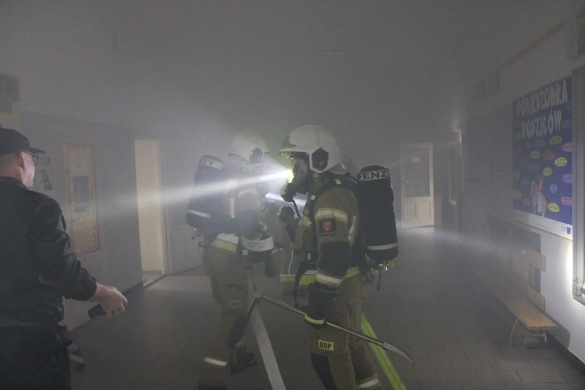 Po przybyciu na miejsce strażacy w pierwszej kolejności zbudowali linię gaśniczą, a następnie rozpoczęli przeszukiwanie budynku w celu zlokalizowania osób zaginionych i ich bezpiecznej ewakuacji.